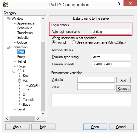 On this tab, enter your Linux username under Login Details