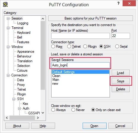Open up your standard Putty window